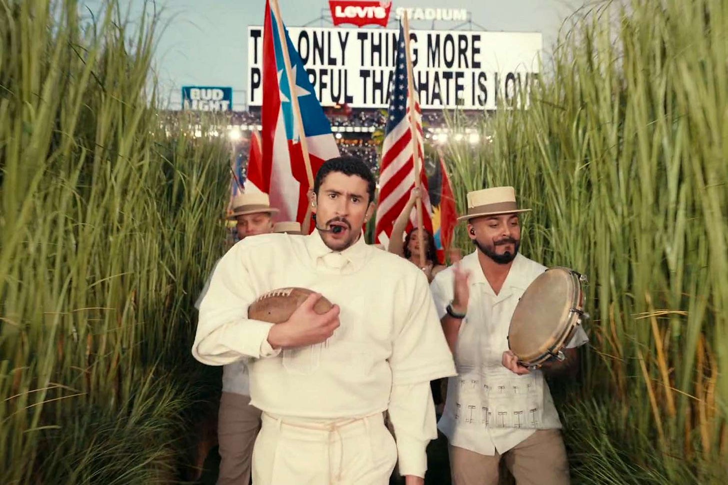 BIENVENIDOS AL INFORME DE BARDI PARTY! What a thrill it was to watch el espectáculo de medio tiempo del Súper Tazón!!! Bad Bunny pulled off probably the most ingenious, well-directed, heart-stirring, socially provocative halftime show ever last night, starting with sugar cane plantations and ending with me and my husband tearing up and yelling MEXICOOOOO from our couch as Benito recited a litany of the countries and cultures that make up the Americas. We got a Spike Lee dolly shot, an actual wedding, a really daring crowd surfing moment, 500 people dressed as bushes, 15 seconds of Daddy Yankee’s “Gasolina,” all of which added up to 12 minutes of “joy as resistance” art. Just a beautiful celebration of community and culture and what we used to characterize as the American dream.