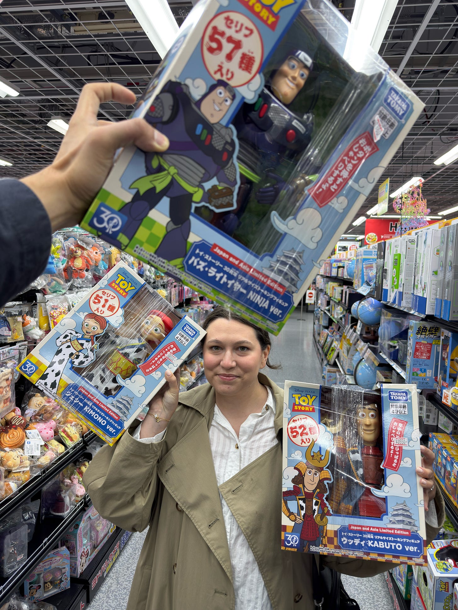 I did end up finding the Japanese Toy Story figures that Griffin wanted and I bought him Samurai Woody. I would have gotten all three of them but they were huge and also $50 each.