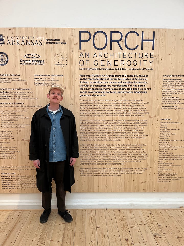 Ben Hosley, Producer: “I recently just got back from my honeymoon in Italia. I’m still lagged af and am finding it hard to put into words my overall experience but here it goes: holy fucking roman shit! WHAT A COUNTRY!!! It’s so damn beautiful! Full of ancient wonders! And my god the food and wine what the literal fuck?! I can go on and on but before I make the trip my entire personality for the foreseeable future I wanted to share my recommendation for the Venice Biennale. For those unfamiliar, it’s an annual international arts, culture, and design festival where countries from around the world curate an exhibition showcasing new ideas curated around a theme. For the 61st edition the theme was Intelligens. Natural. Artificial. Collective. Which I’m not gonna begin to try to unpack for you but you can read the curator’s mission statement here.Now it might be the most obvious thing to recommend visiting Venice maybe of all time? But I really cannot stress how incredible this event was. I saw so much great visionary stuff but the highlight was America’s contribution which was EXTREMELY my shit: “PORCH: An Architecture of Generosity”. Y’all, it was an entire exhibition devoted to the motherfuckin porch! Not only was it look at the history of the porch BUT there was a construction of the porch of the future. I was in porch heaven. I left feeling inspired. Normally, I’m anti homework but when it porch learnin I’m ready to open my mind.SO in conclusion, go to Venice if you can for Biennale or even sit on a porch and watch a dang movie.”