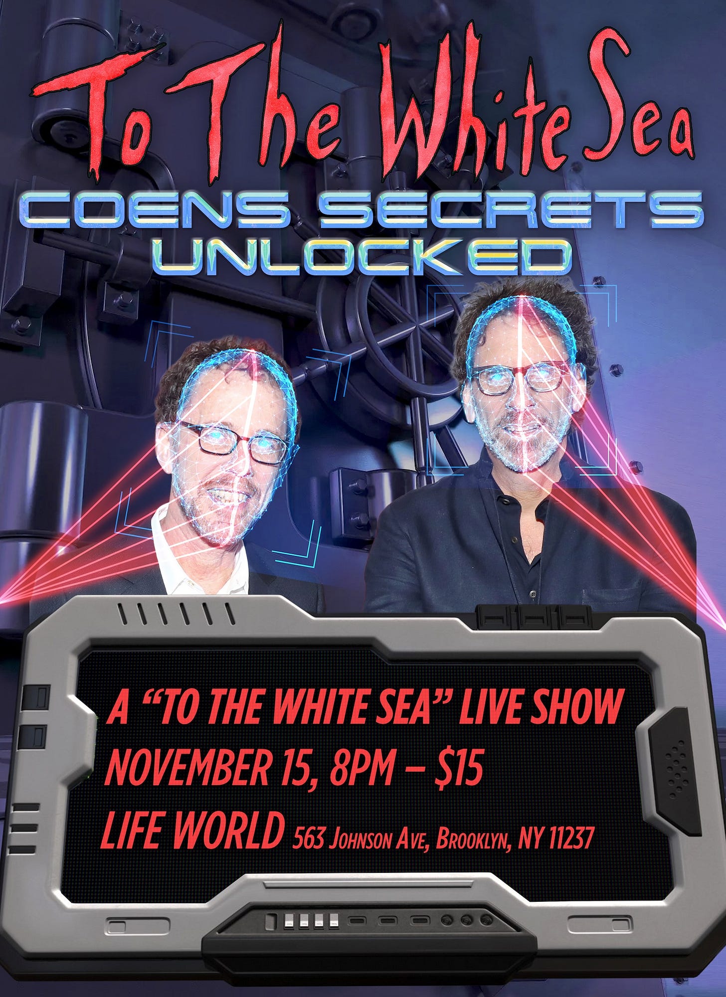 A Message from Jordan Fish of To The White Sea: Your friends Ray Tintori and Jordan Fish of the TO THE WHITE SEA podcast are putting together an evening of close listening and cinematic revelation at LIFE WORLD on November 15 at 8pm. The event is called COENS SECRETS UNLOCKED. If you’re in or around NYC you won’t want to miss this—all will be revealed! This will be a live recording featuring audience participation and surprise special guests—one of whom we can exclusively reveal here to be one Downtown Griffy Newms! Tickets are on sale now, so come on out and enjoy the new freedoms!
